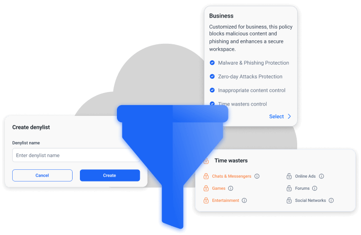 Every click matters. Shield your business from harmful websites, prevent cyber threats, and keep employees safe online with intelligent DNS filtering built for SMBs